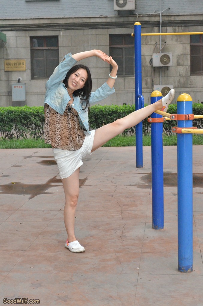 查看高清原图:678 × 1024,图集:【小小嫂子摄影】小区广场豹纹嫂子练习压腿.