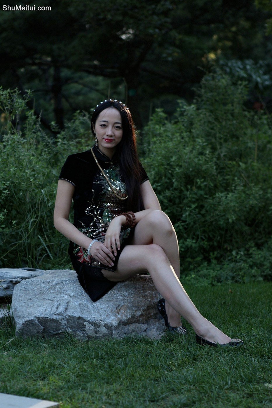 给一位气质美姐拍照,黑色短旗袍美腿性感[第1张/共19张]