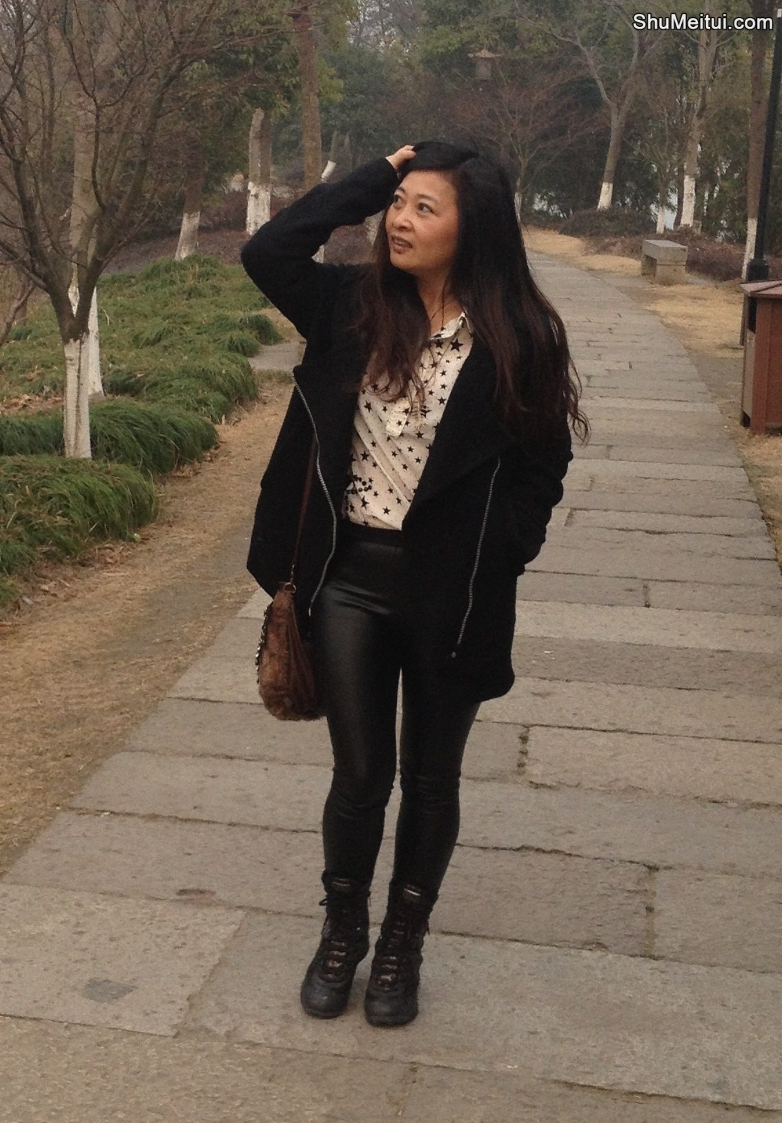 丰满的兰月姐穿紧身皮裤在湖边拍照 [第32张/共33张]