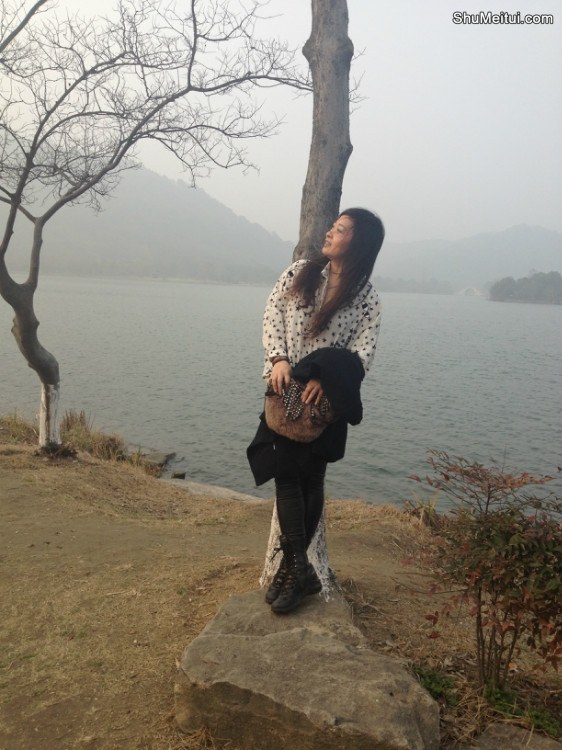 丰满的兰月姐穿紧身皮裤在湖边拍照 [第8张/共33张]