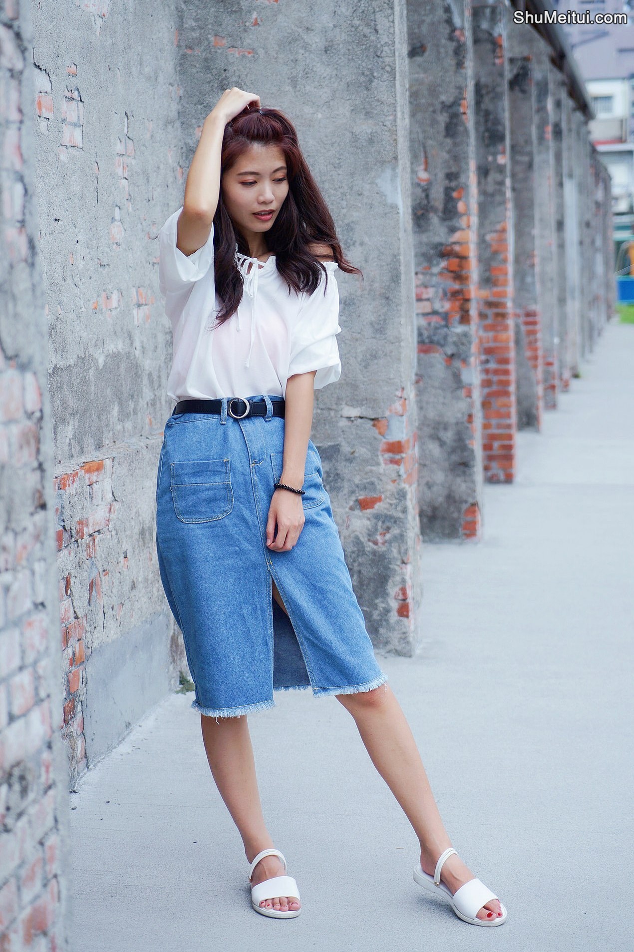 CC姐穿开叉牛仔裙外拍在水边把鞋也脱掉了 [第12张/共41张]