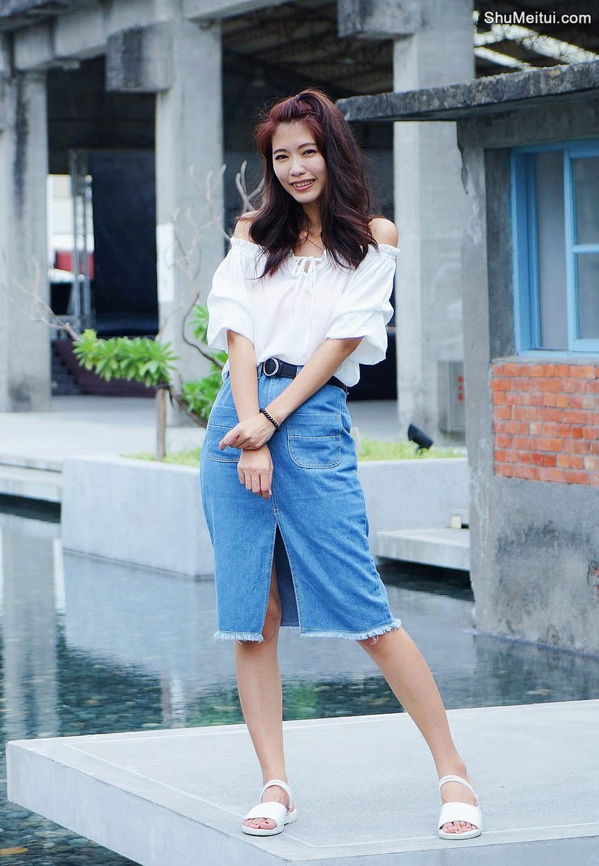 CC姐穿开叉牛仔裙外拍在水边把鞋也脱掉了 [第7张/共41张]