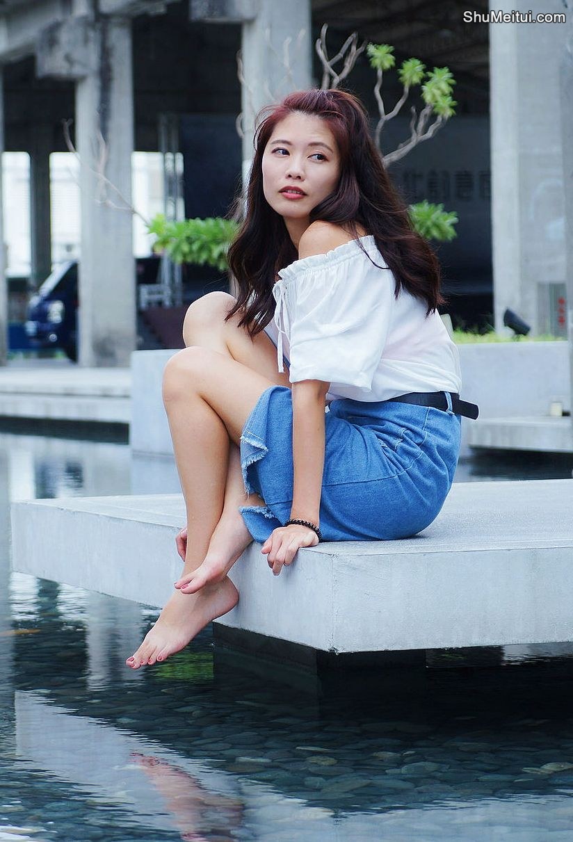 CC姐穿开叉牛仔裙外拍在水边把鞋也脱掉了 [第9张/共41张]