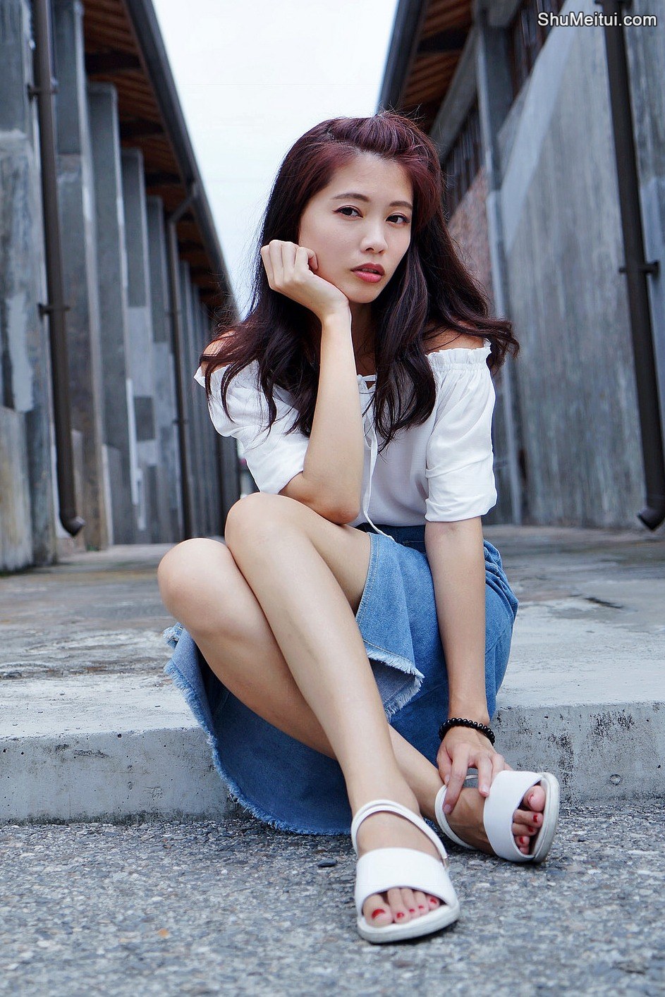 CC姐穿开叉牛仔裙外拍在水边把鞋也脱掉了 [第17张/共41张]