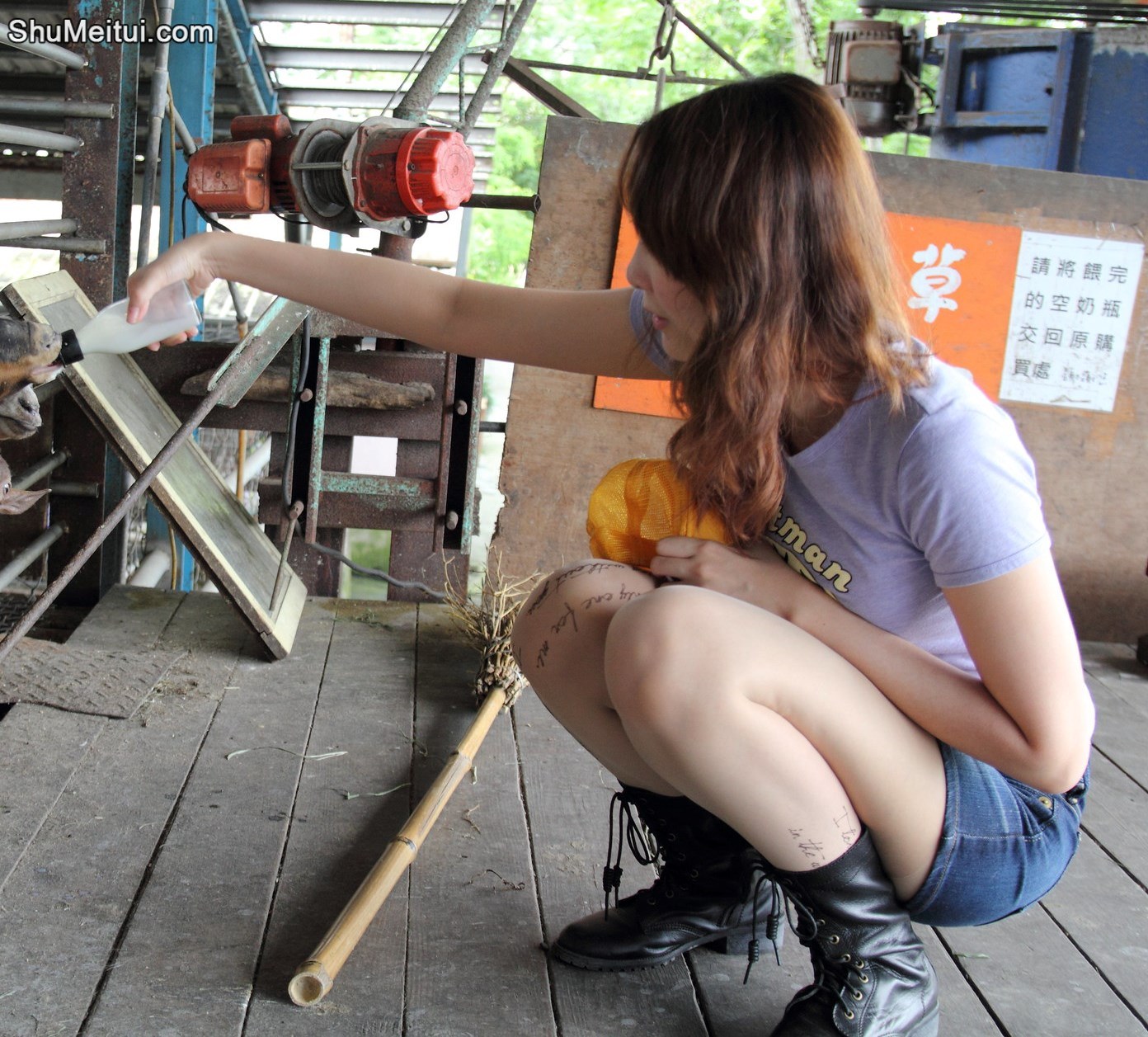 查看高清原图:1392 × 1257,图集:李鸽鸽穿超短牛仔裙配个性肉色丝袜.