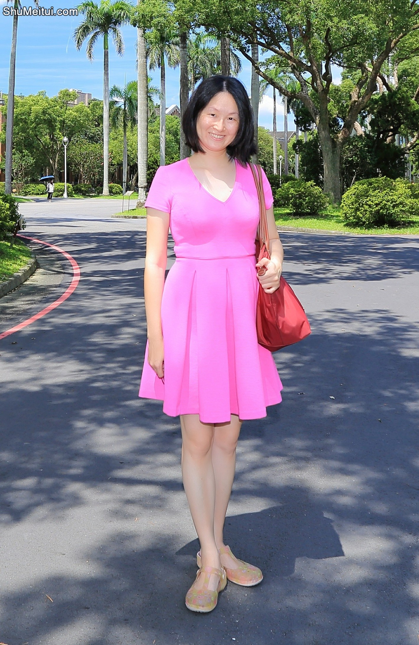 Elin姐穿紫色短裙在大学校园里清新拍照片 [第6张/共9张]