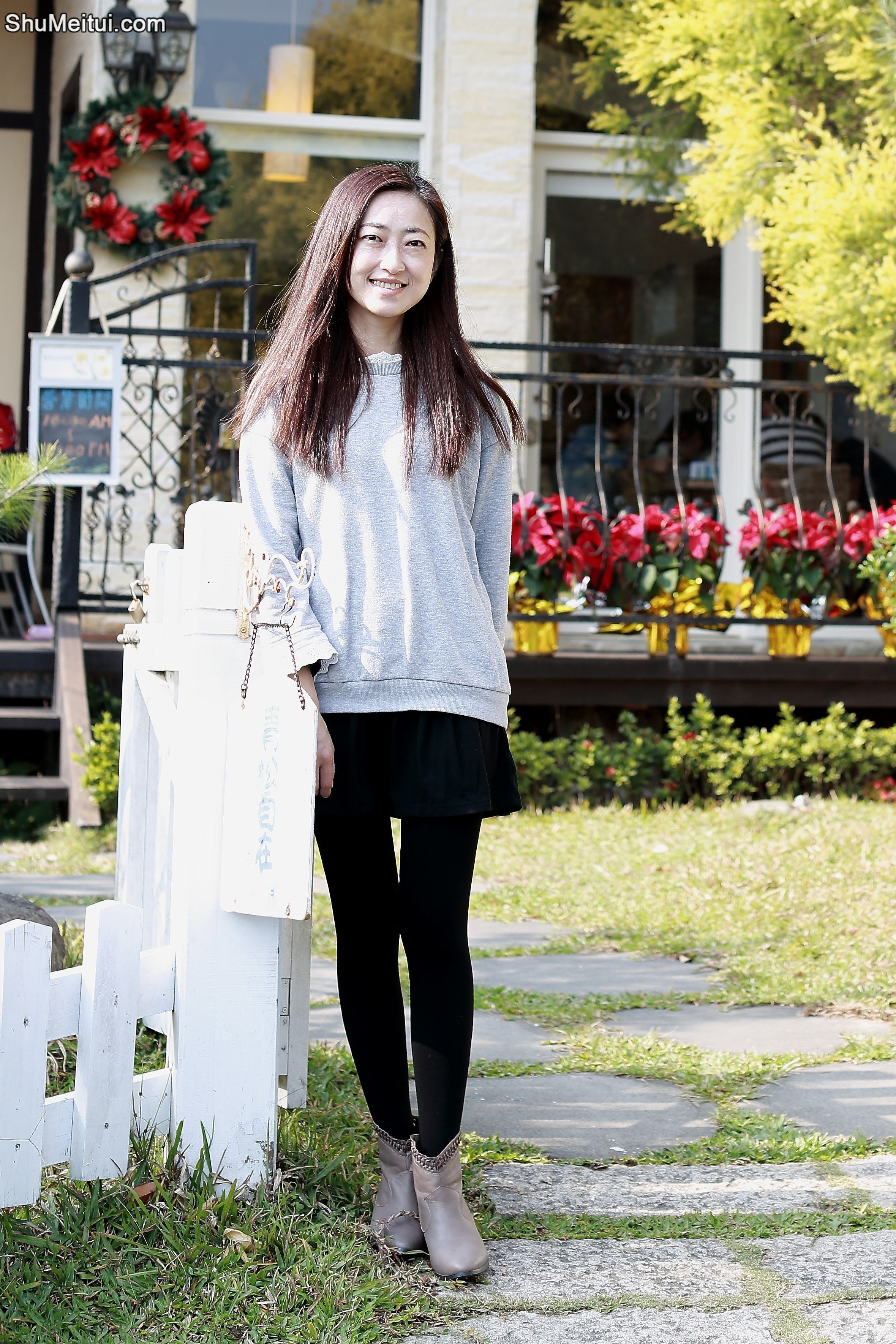 查看高清原图:2359 × 3538,图集:美女林芳芳穿黑色裤袜明媚外拍.
