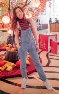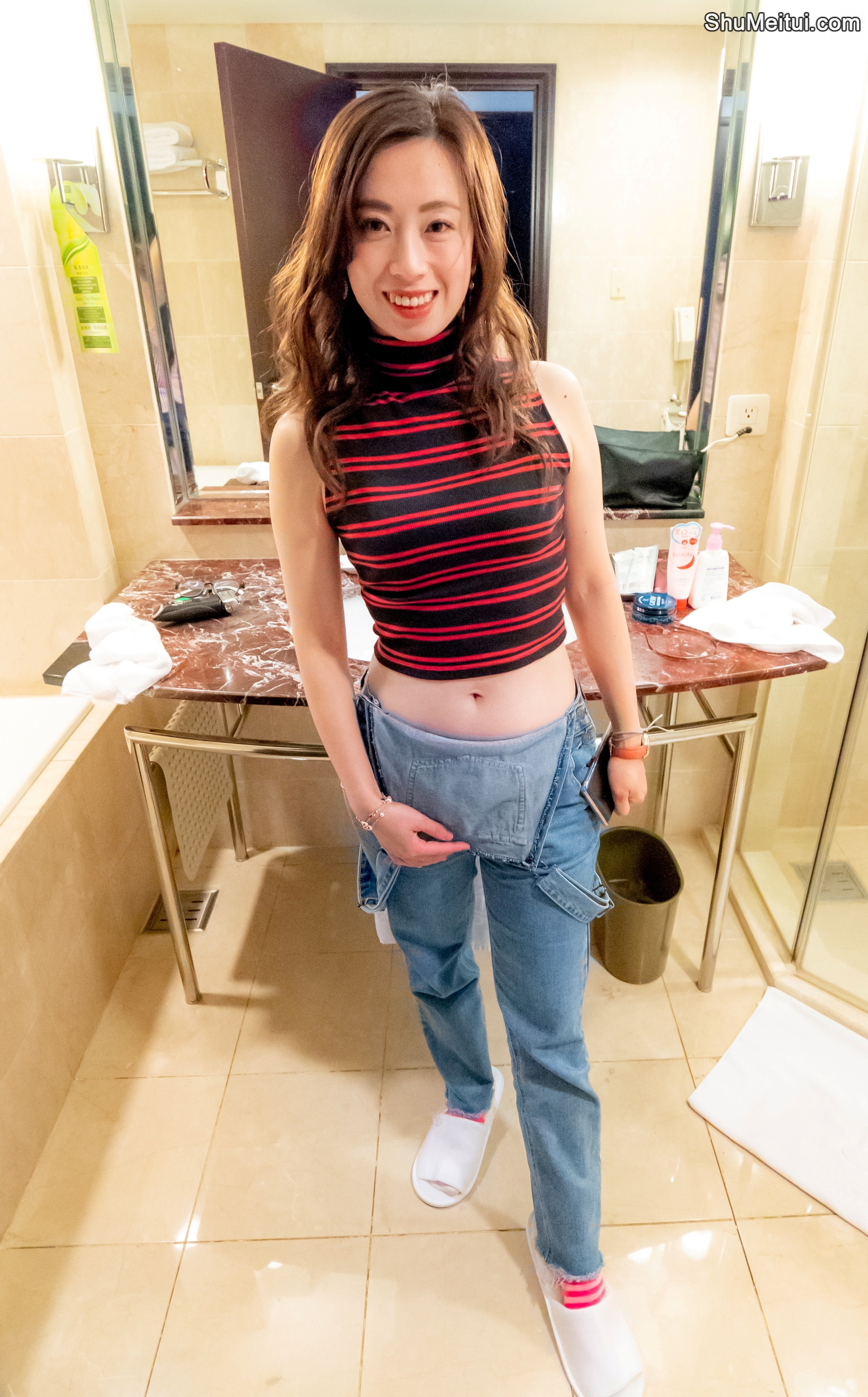 堂堂身穿吊带牛仔裤脱鞋露出可爱的棉袜脚 [第5张/共8张]