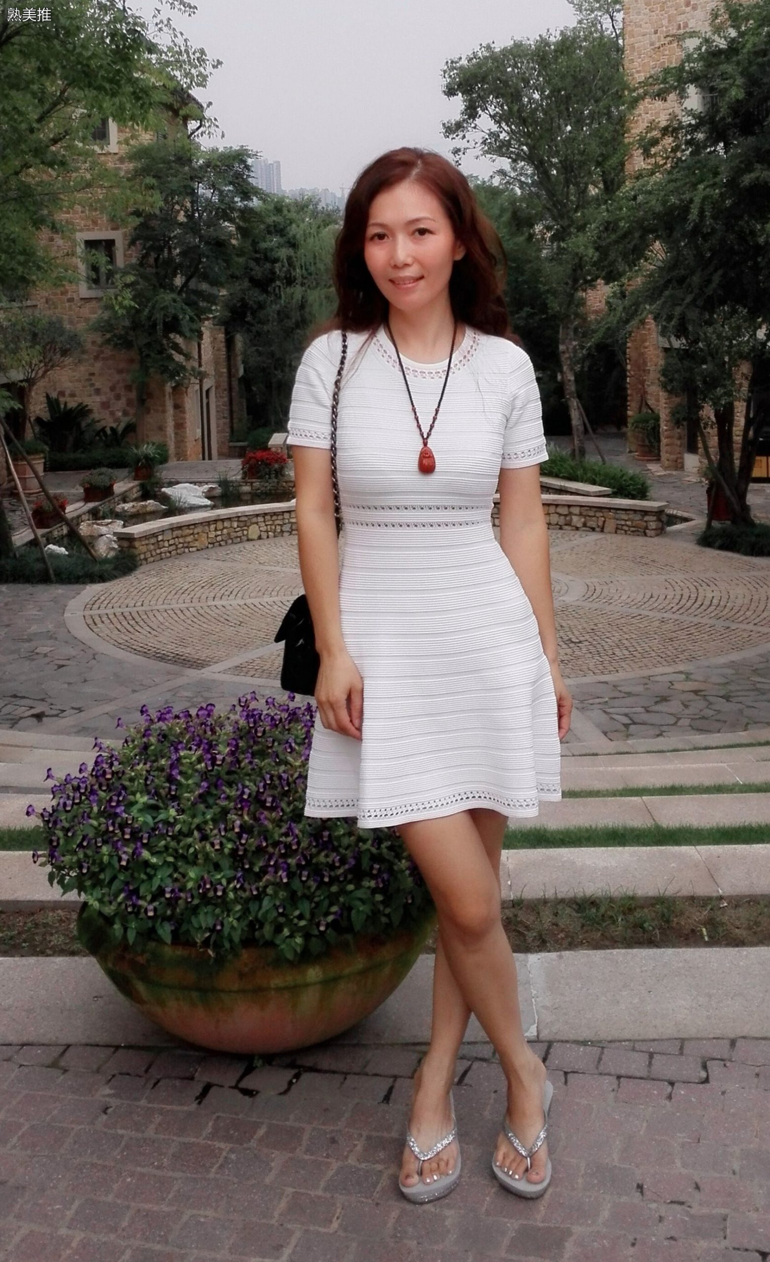 成熟美姐优雅穿搭白裙下玉足穿坡跟凉拖 [第1张/共6张]