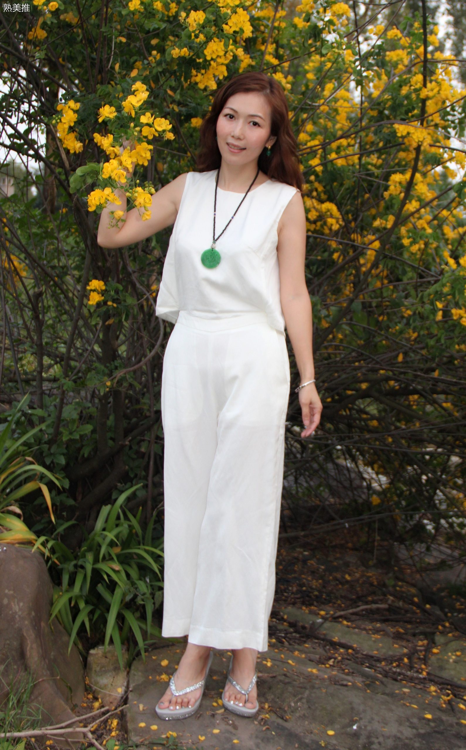 成熟美姐优雅穿搭白裙下玉足穿坡跟凉拖 [第4张/共6张]
