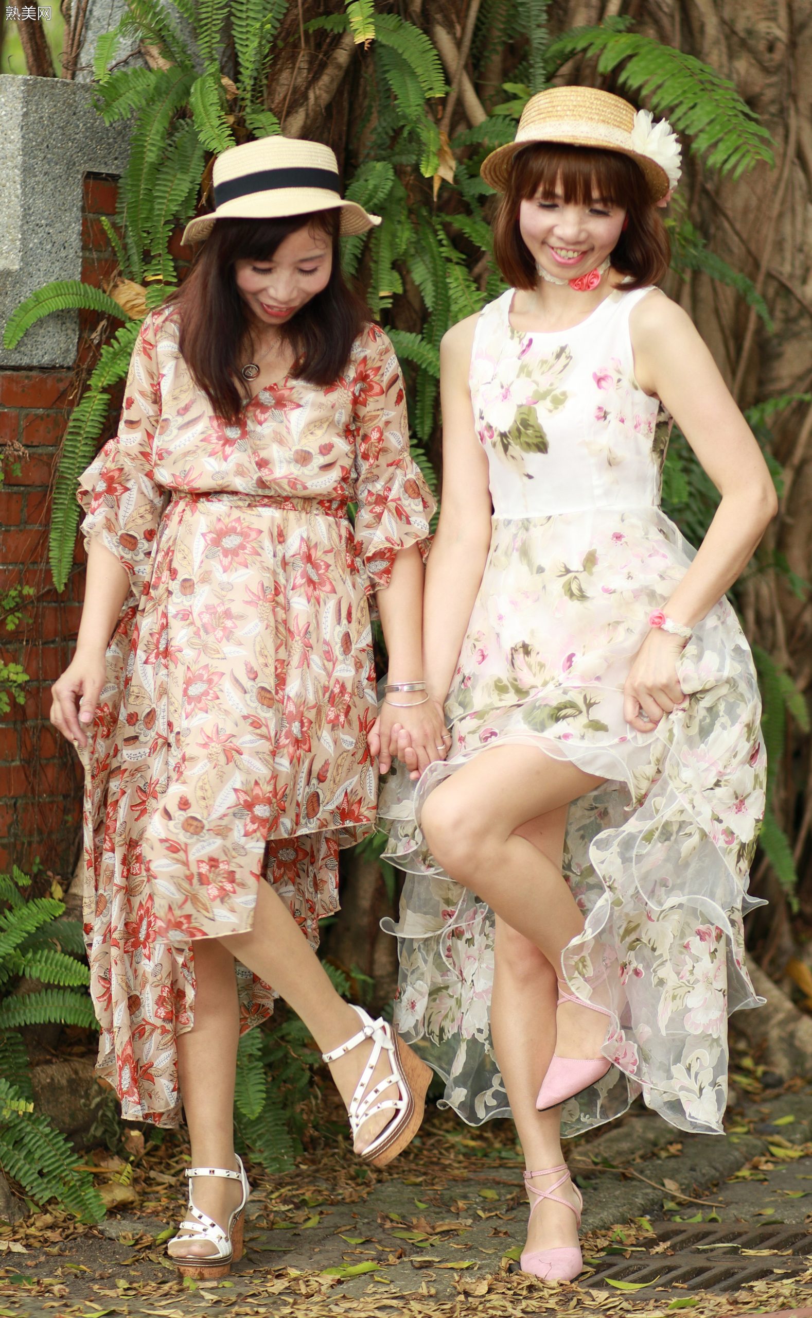 穿肉色袜的两姐妹一起出门拍照[第2张/共98张]
