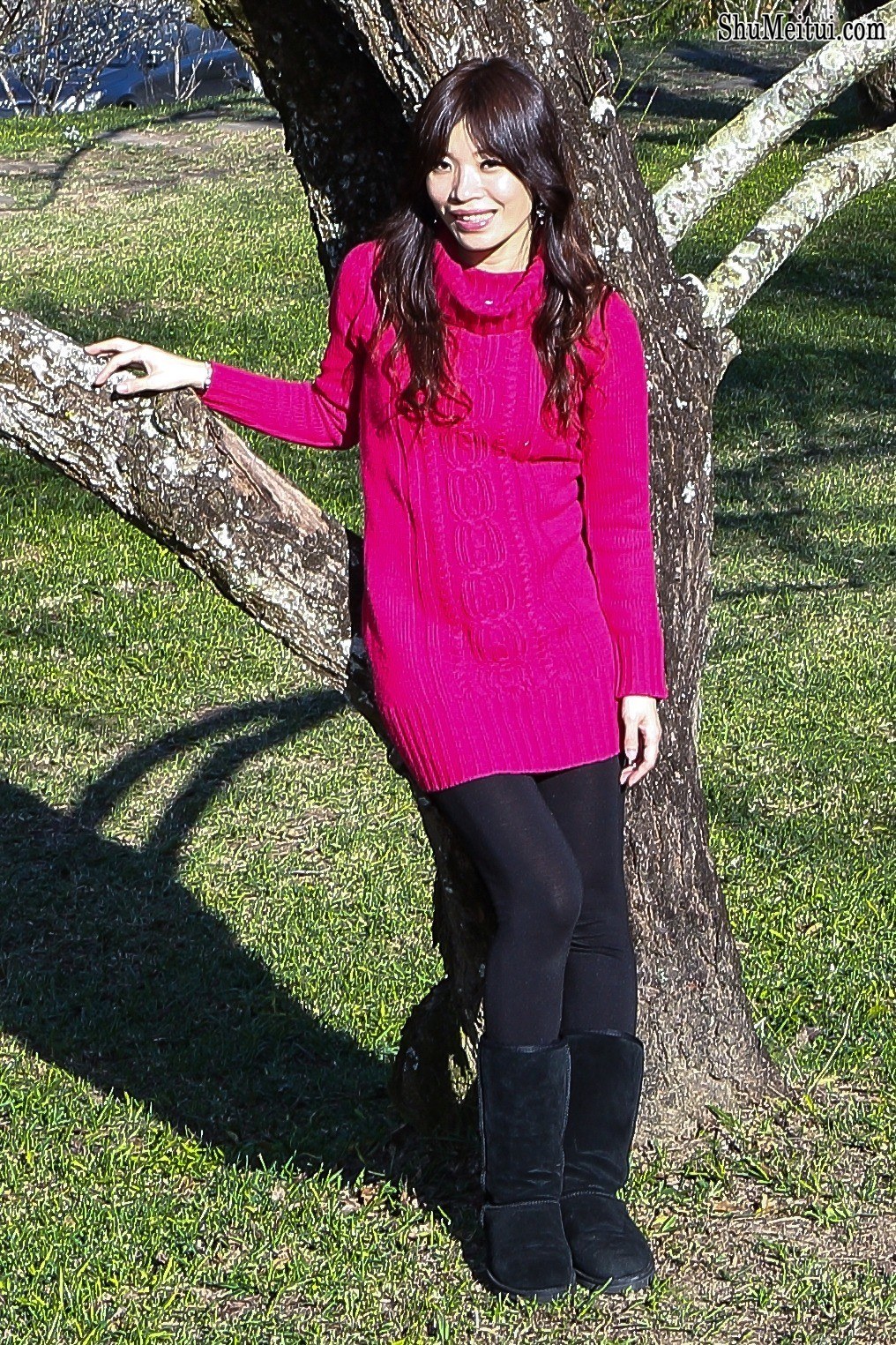 查看高清原图:1016 × 1525,图集:表嫂春日里穿裤袜靴子外拍.