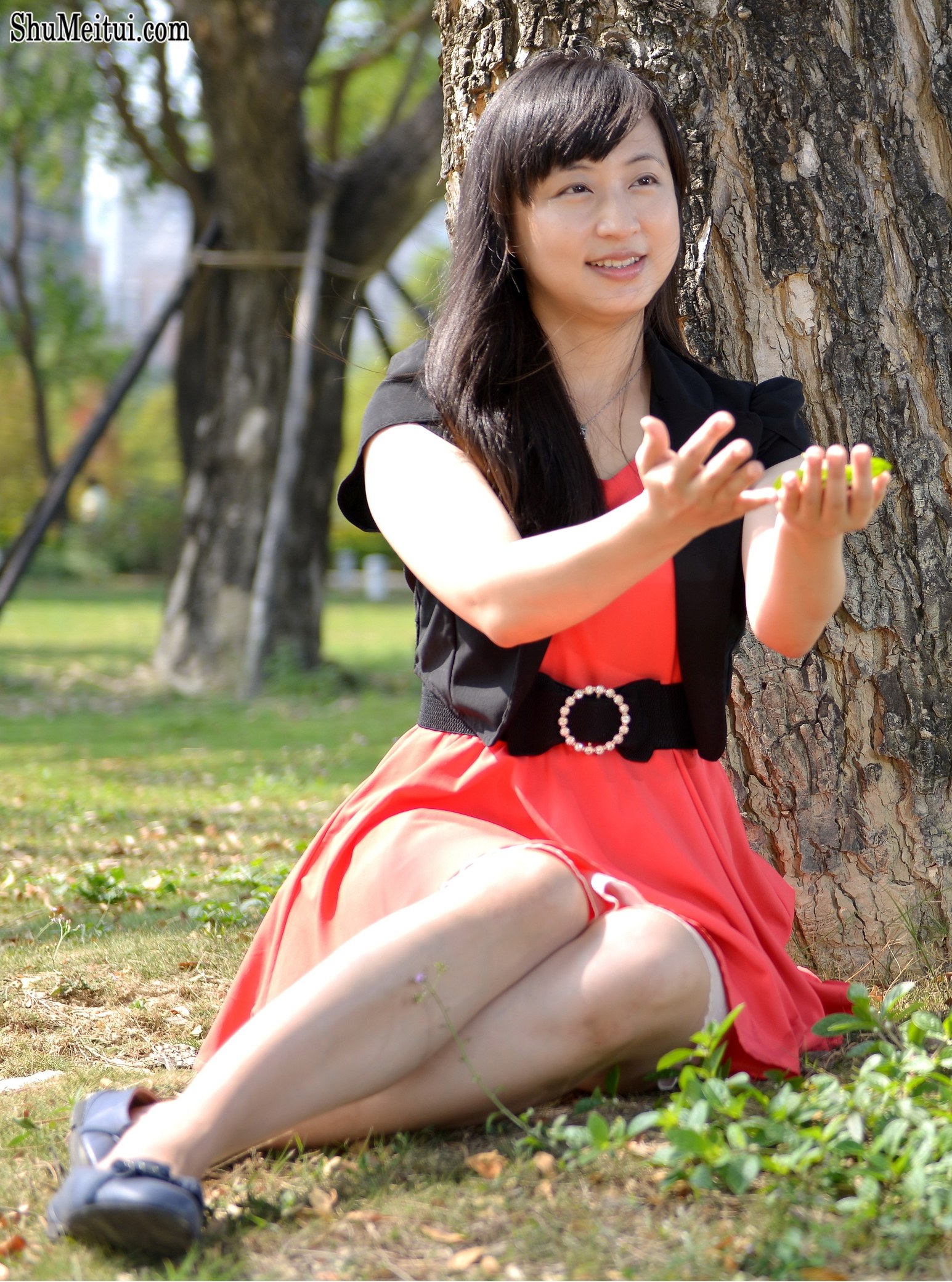 穿红裙的小云姐树林里玩树叶 [第10张/共13张]