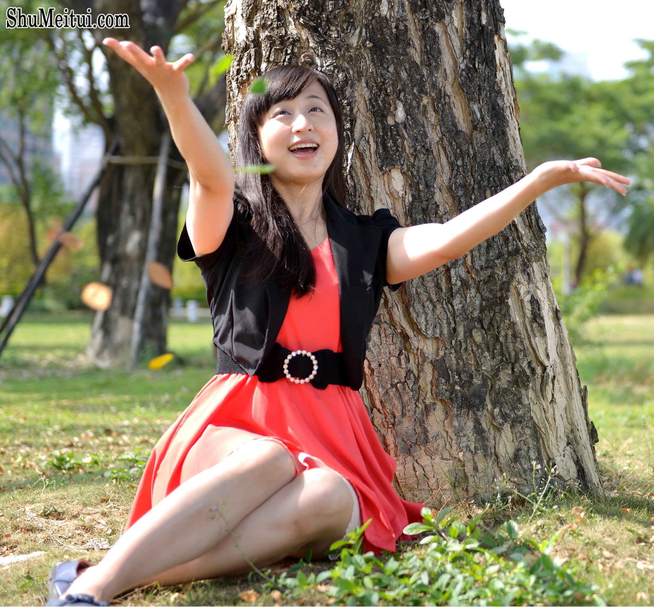 穿红裙的小云姐树林里玩树叶 [第12张/共13张]